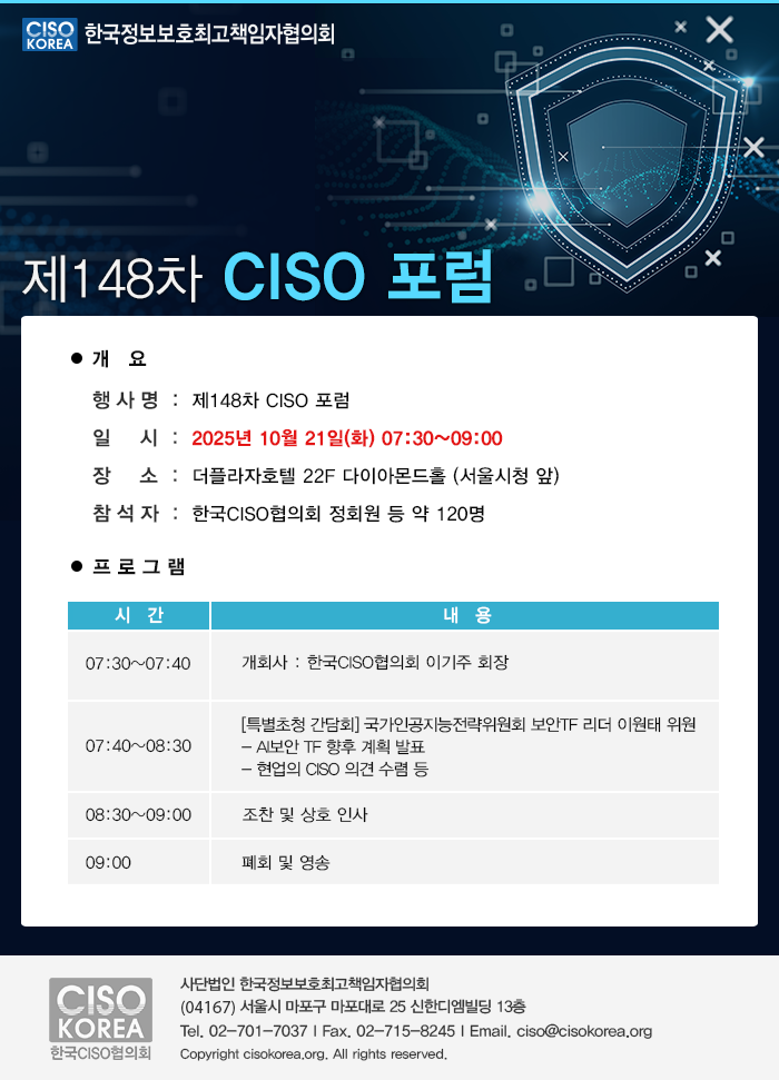 [한국CISO협의회] 제148차 CISO 포럼 개최 안내