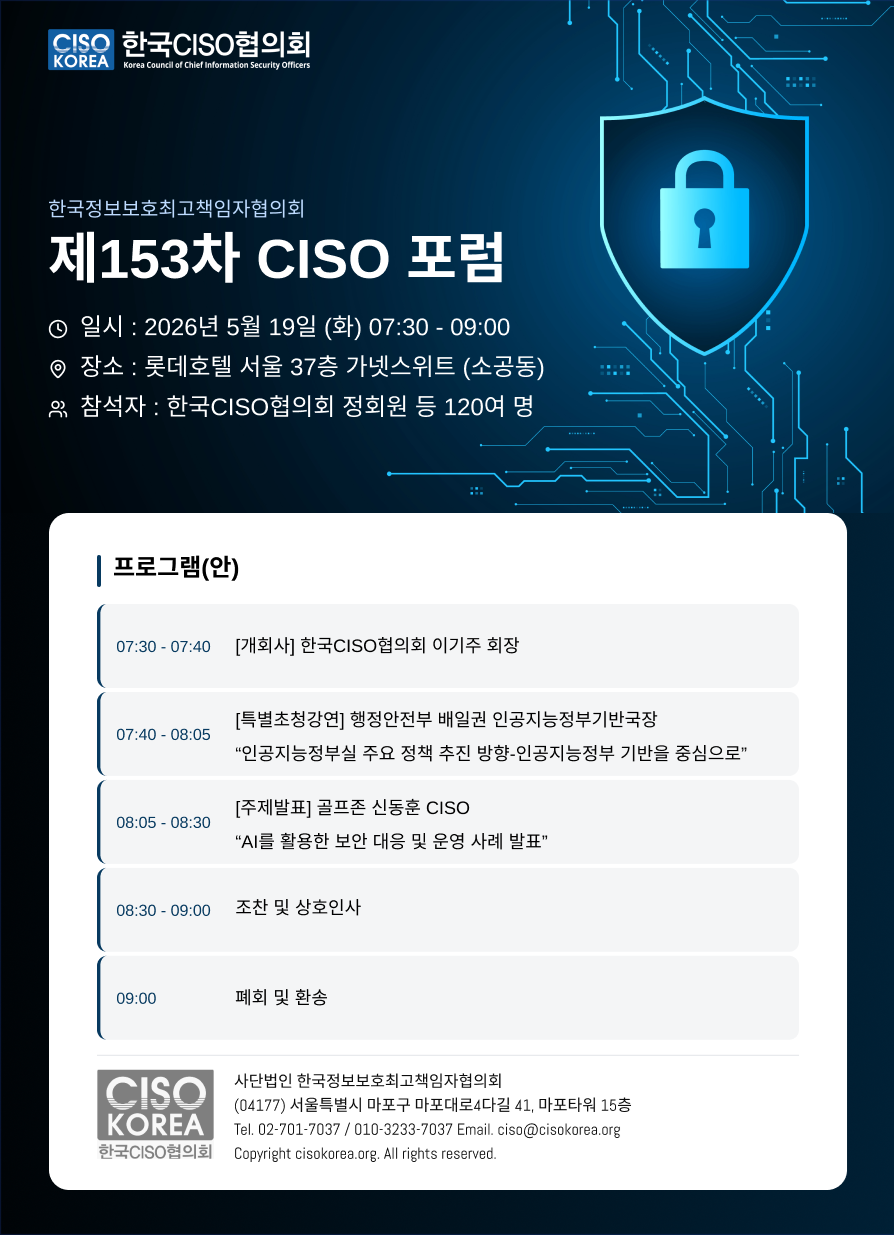 [한국CISO협의회] 제153차 CISO 포럼 개최 안내