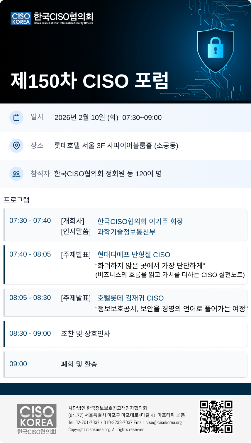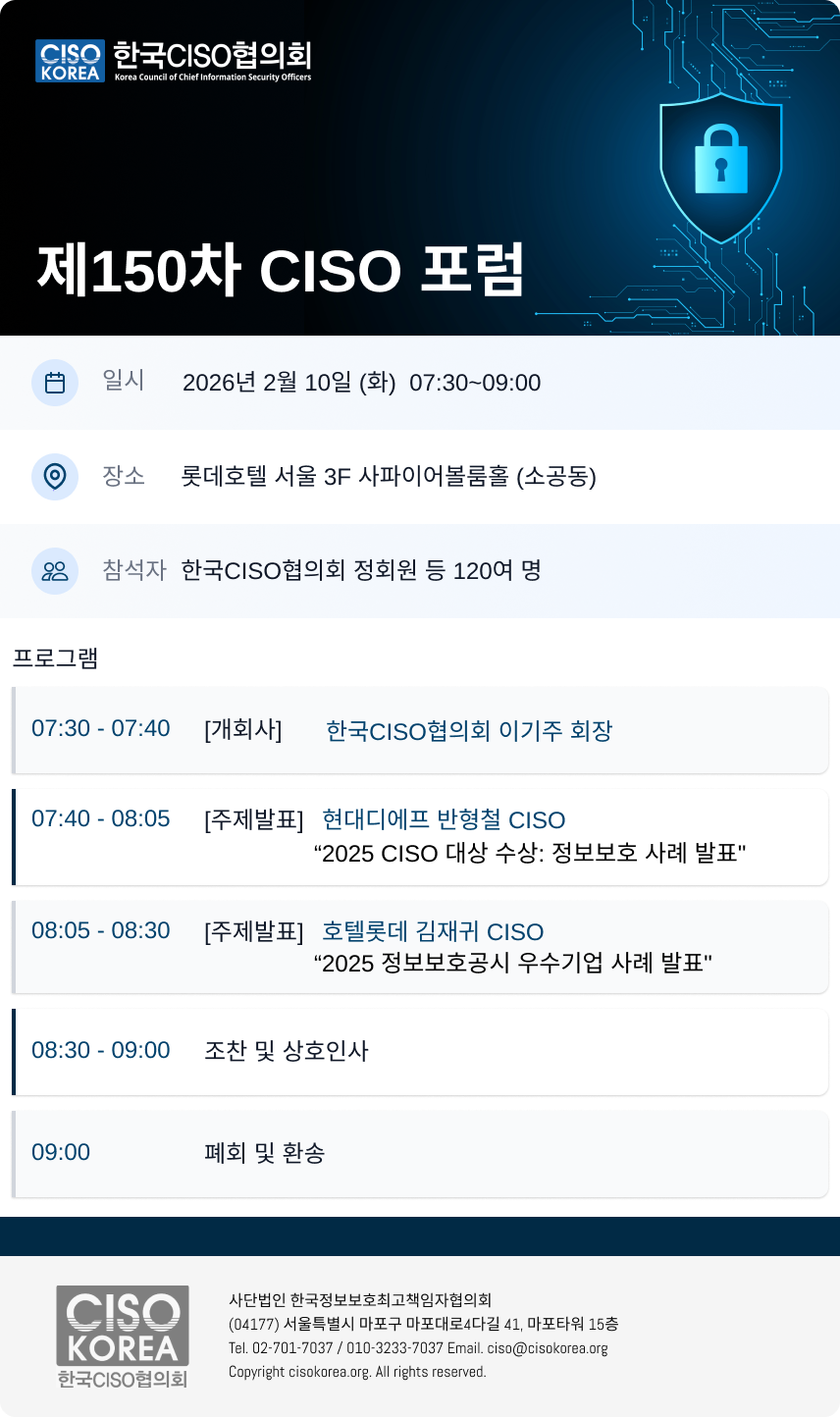 [한국CISO협의회] 제150차 CISO 포럼 개최 안내