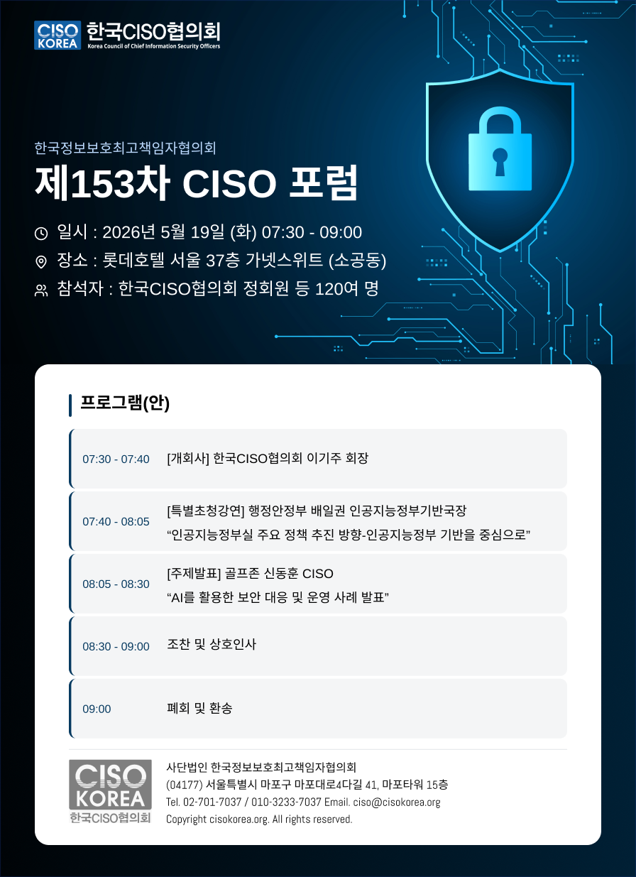 [한국CISO협의회] 제153차 CISO 포럼 개최 안내