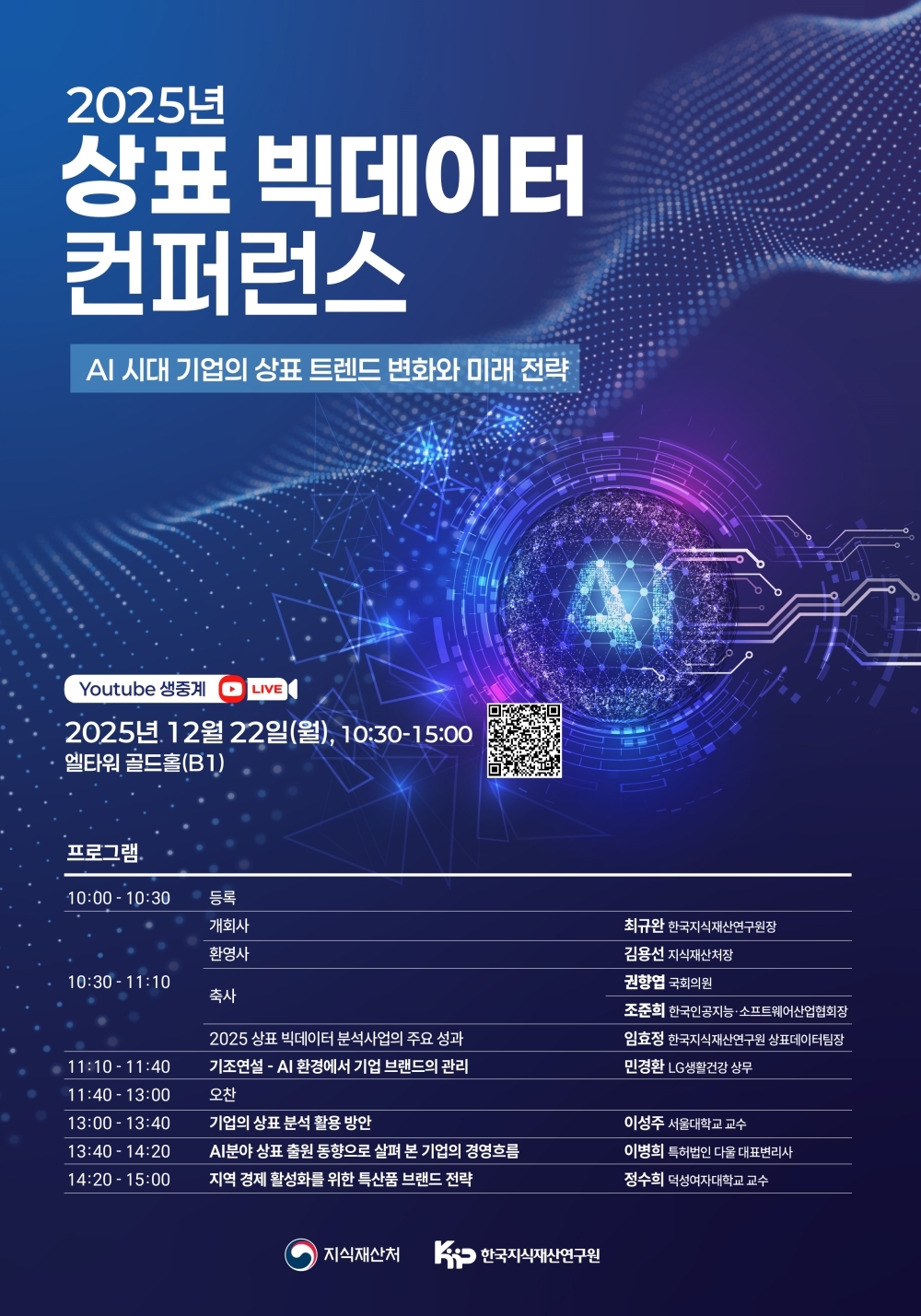| AI 시대 비즈니스 전략, 출발점은 ‘상표 빅데이터’...지재처, 관련 컨퍼런스 개최 | 2025.12.22 |