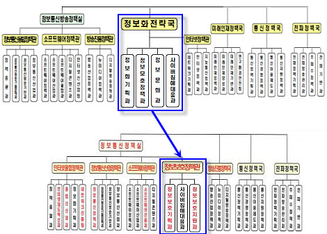 기존 과 단위에서 국장급으로 격상...정보보호 분야 비중 확대 신설되는 정보보호정책관 비롯해 3개과 과장 등 후속인사 주목 [보안뉴스 민세아] 정부부처에서 정보보호 분야의 위상이 한층 커질 것으로 예상된다. 기존에 미래창조과학부(이하 미래부)에서 정보보호를 담당하던 정보보호정책과와 사이버침해대응과는 정보화전략국 산하에서 ICT 분야와 함께 업무를 수행해 왔다. 그러나 보안위협 증가에 따라 사이버보안의 중요성이 한층 커지면서 산하에 3개과가 있는 정보보호정책관이 신설되는 것이다. 이번 조직 개편은 최근 화두가 되고 있는 사물인터넷과 핀테크 등에서 정보보호가 핵심키로 부각되는 등 인터넷 활용과 디지털경제의 확산에 따른 사이버 침해사고에 효과적으로 대응하고, 정보보호산업을 보다 체계적으로 육성·지원하기 위해 추진된 것으로 알려졌다. 미래부 조직개편으로 기존에 있던 정보화전략국이 폐지되고, 정보통신정책실내 정보보호정책관이 신설된다. 이로 인해 기존 정보화전략국 산하에 있던 정보보호정책과와 사이버침해대응과가 정보보호정책관 산하로 옮겨가는 동시에 1개과가 더 생긴다. 신설되는 정보보호정책관 산하에는 기존 정보보호정책과가 정보보호기획과와 정보보호지원과 2개로 분리되고, 여기에 사이버침해대응과가 더해져 3개과 체제로 확대된다.