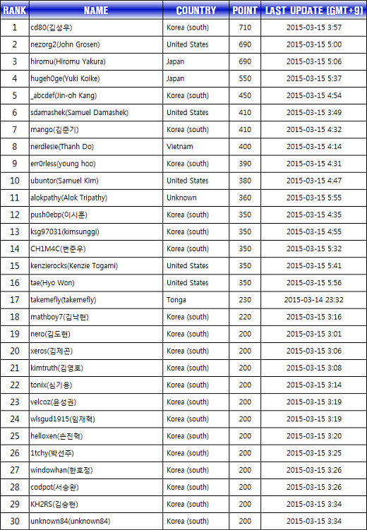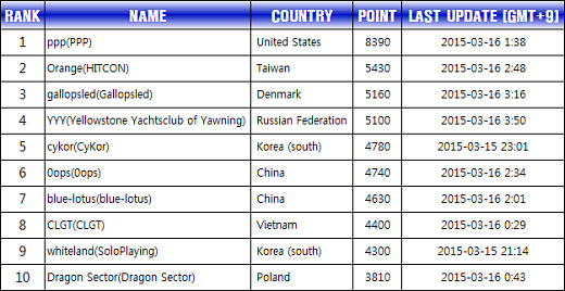| 해킹방어대회 ‘코드게이트 CTF 2015’ 예선 결과는? | 2015.03.16 | ||||