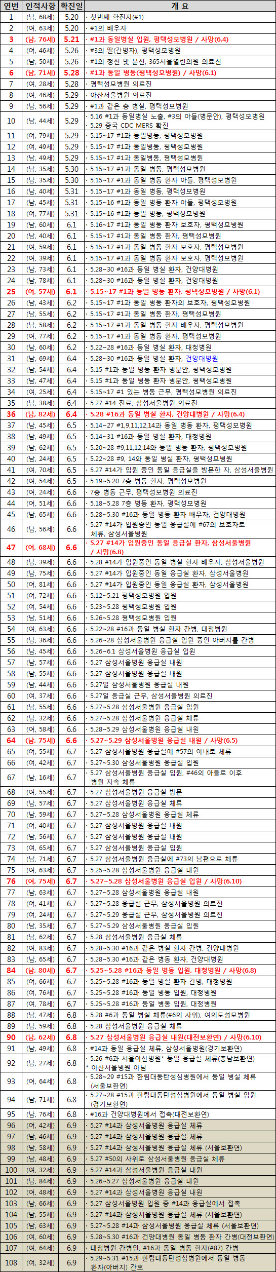 | 메르스 확진자 13명 추가, 총 108명(6월 10일) | 2015.06.10 | ||