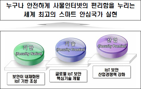 사물인터넷 정보보호 로드맵 3개년 계획, 어떤 내용 담겼나? [보안뉴스 민세아] 우리 주변의 사물이 IT와 융합되면서 사이버공간의 위협이 현실세계로까지 전이·확대될 가능성을 무시할 수 없게 됐다. 현재 초기단계인 국내 사물인터넷(IoT) 정보보호 산업을 빠르게 발전시킬 수 있는 환경을 만들어 장기적으로 대한민국을 세계 최고의 스마트 안심국가로 만들기 위해 정부가 두 팔을 걷고 나섰다.