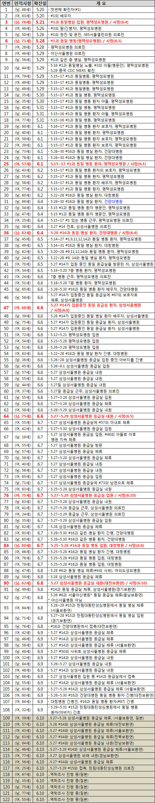 △감염 확인자: 122명(사망자 포함)