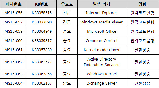 | 원격코드 실행 취약점! MS 6월 정기 보안 업데이트 | 2015.06.11 | ||