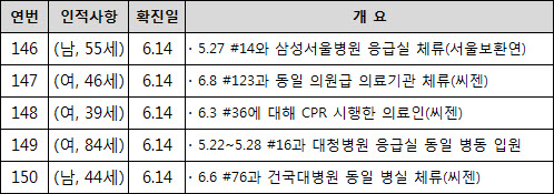 | 메르스 확진자 총 150명, 격리자 5천여 명(6월 15일) | 2015.06.15 | ||||||||