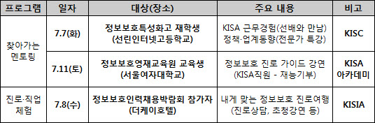정보보호 전문가가 찾아가는 멘토링, 진로매칭 채용상담 등 실시
